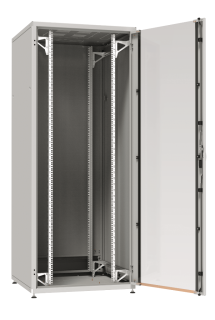 19" Netzwerkschrank PRO 42HE, 1963x800x600 mm, Farbe Grau RAL 7035, Dach ist vorbereitet für die Aufnahme einer Lüftereinheit sowie einem aufgesetztem, abnehmbarem Deckel, Verschluss-System mit Schwenkhebelgriff