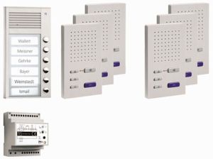 PPUF06-EN/02 audio:pack UP für 6 Wohneinheiten, mit Außenstation PUK 6 Klingeltasten + 6x Freisprecher ISW3030 + Steuergerät BVS20