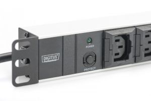 DN-95404 19" Steckdosenleiste mit Aluminiumprofil, 10-fach, 2 m Zuleitung IEC C14 Stecker, 10A, 2500W, 250VAC 50/60Hz, overl-prot.