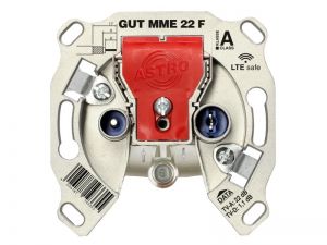 GUT MME 22F Multimedia-/ BK- & Daten-Durchgangsdose, erweiterter Frequenzbereich 5 - 1218 MHz für DOCSIS 3.1, F-Anschluss, TV- & Modem-Anschlussdämpfung ca. 22 dB