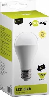 LED Birnenform E27, 17W (entspricht 100W), 220V-240V, A60/E27 Sockel, 1700lm, 200°, 2700K Warmweiß, nicht dimmbar, EEC: A+